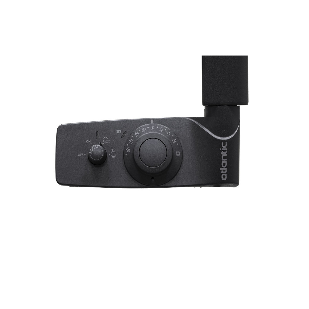 • «BOOST» — предназначен для интенсивного прогрева помещения. С момента активации Atlantic Adelis антрацит 500 Вт работает на максимальной мощности в течении 2 часов, вне зависимости от установленной температуры на панели управления. Активируется режим нажатием ручки Boost на 1 секунду. Режим может быть отключен повторным нажатием ручки на 1 сек. При более длительном нажатии ручки включается функция «Защита от детей».