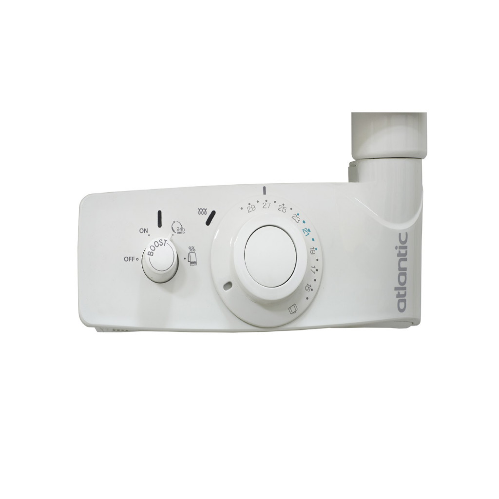 - “BOOST” – призначений для інтенсивного прогрівання приміщення. З моменту активації Atlantic Adelis білий 750Вт працює на максимальній потужності протягом 2 годин, незалежно від встановленої температури на панелі управління. Активується режим натисканням ручки Boost на 1 секунду. Режим може бути відключений повторним натисканням ручки на 1 сек. У разі тривалішого натискання ручки вмикається функція “Захист від дітей”.