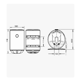 Модель має циліндричну форму бака, монтаж – тільки вертикально. Потужність нагрівального елемента 1,5 кВт, що дає можливість установки в місцях зі старою проводкою, невелика потужність тена не буде навантажувати електричну мережу.